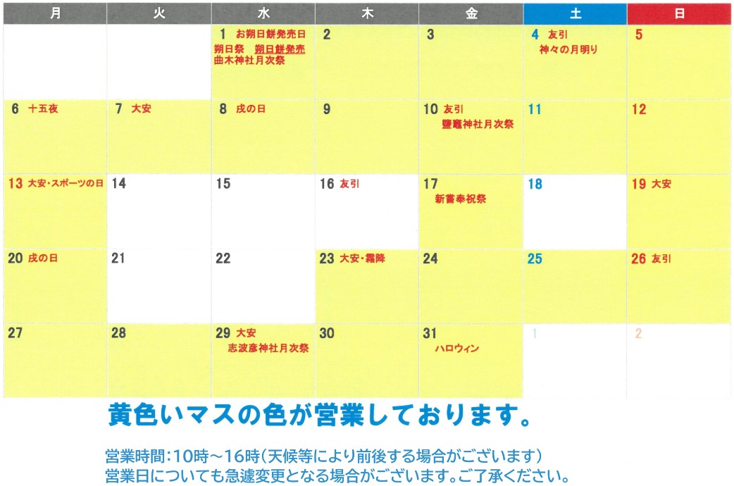「茶屋鹽竈 GAMA – CHAYA(がまじゃや)」10月の営業日のお知らせ