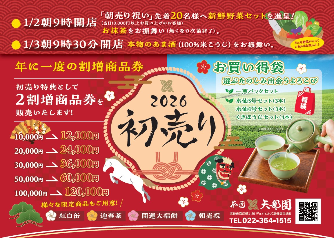 矢部園では、2026年の初商いを1/2(金)より開催させて頂きます。